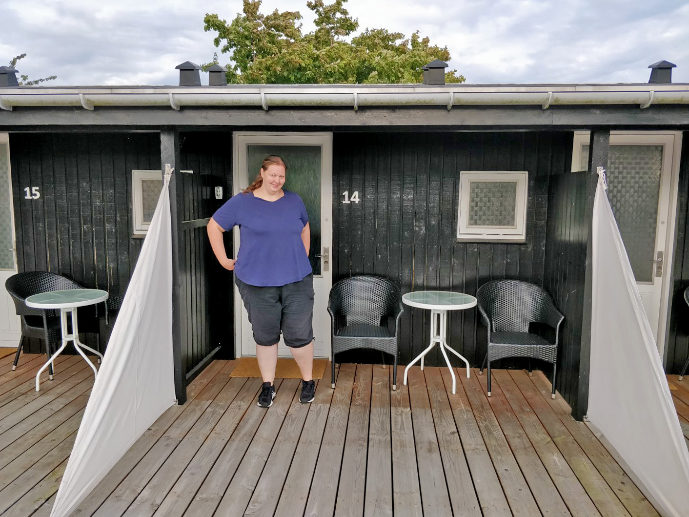 Vel ankommet til Boderne og ferielejligheden fik vi os indlogeret. Det er småt, men udmærket til to personer. Men vi savner godt nok vores tryk-aflastende topmadras der hjemme. Vi har ikke haft mad med i bilen, da der har været omkring 1000 grader varmt, så vi må afsted til den nærliggende by, Aakirkeby, for at handle ind.