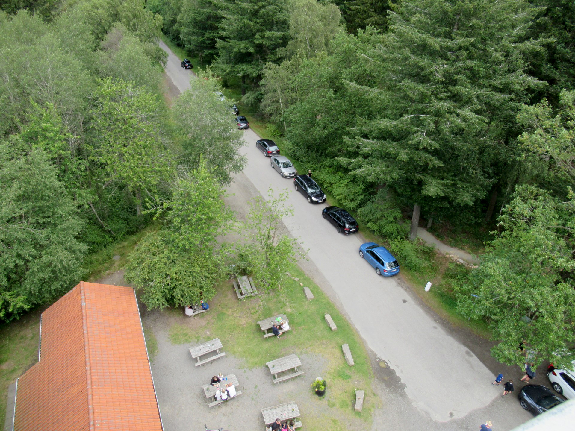 Videre op langs kysten til Hasle, hvor vi så et røgeri. Men vi var ikke sultne, så vi kørte videre og ind mod midten af øen til Rytterknægten, som er det højeste punkt på Bornholm. Vi var en tur oppe i tårnet, så vi kunne se ud over trætoppene. Det var et flot syn, selvom der var lidt overskyet.