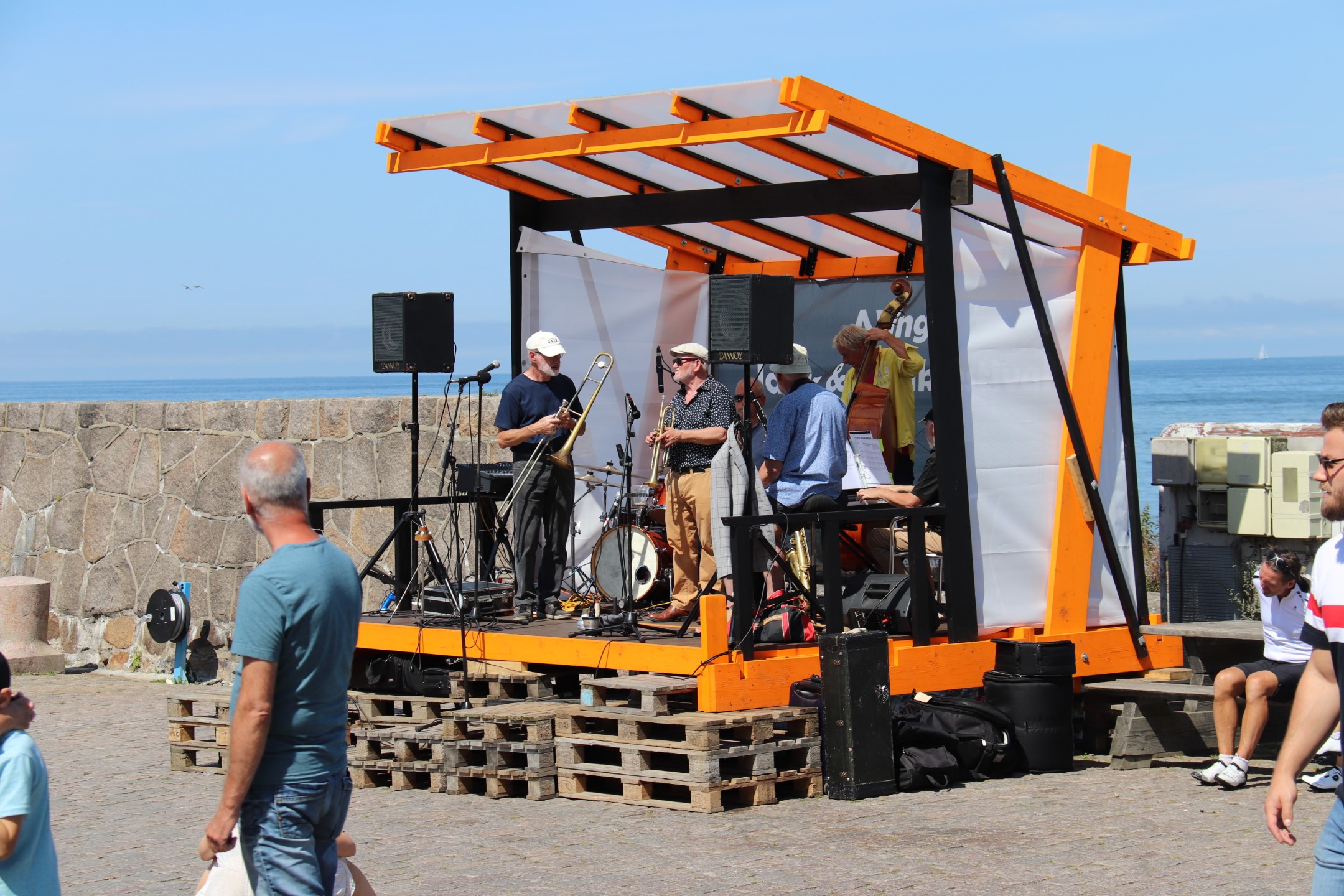 Når vi nu var i Sandvig kunne vi lige så godt også se Allinge, så vi kørte ind til Allinge og fandt ud af, at der var jazz og musikfestival på havnen. Så vi parkerede bilen, gik ned og hørte River City Jazz Band. Vi fik også købt nye solbriller til Lone i en nærliggende butik på havnen. Hendes solbriller havde nemlig valgt at eksplodere - ifølge Lones eget udsagn! 💣🕶
