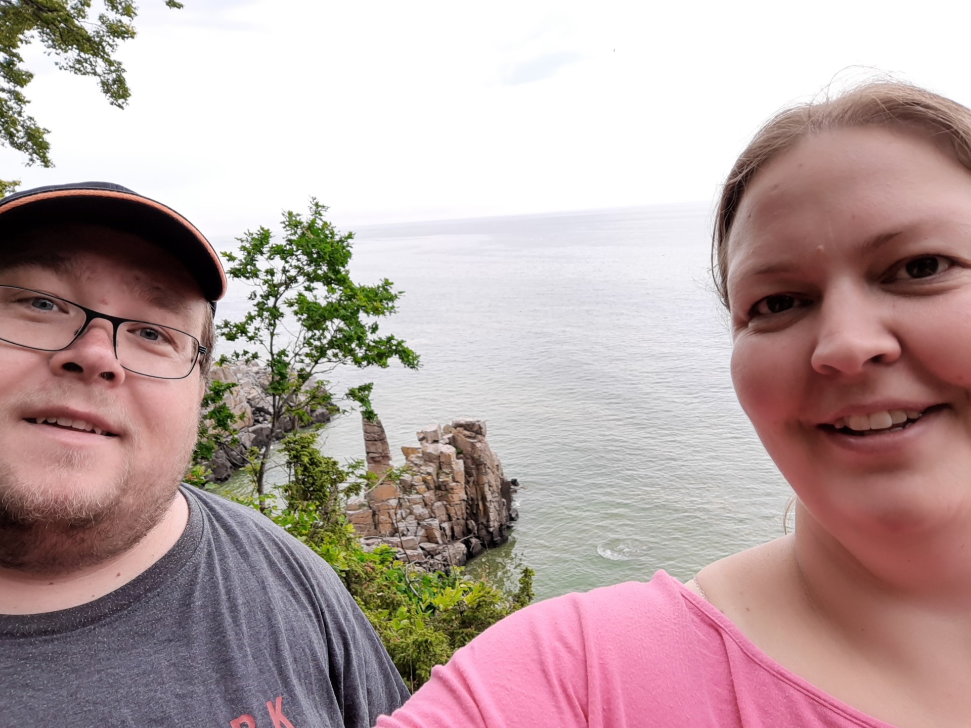Turen gik videre til Gudhjem, hvor vi trillede bilen ned gennem de stejle gader i zigzak mellem turisterne. Der var godt fyldt op, og det var svært at finde en ledig parkeringsplads, så vi besluttede, at vi havde set nok af Gudhjem i denne omgang. I stedet for fortsatte vi ned langs den smukke kyststrækning til Snogebæk, hvor vi havde hørt, at man kan få en flødebolleis. Den var dyr, men når man har hørt om en bornholms flødebolleis, så kan man vel ikke forlade Bornholm uden at have smagt sådan en! Thomas fik en med karamel og Lone en med hindbær. De smagte begge godt, og smagsfordelingen viste sig at være helt perfekt 😁