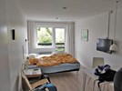 Efter at have indtaget den dejlige is vendte vi snuden hjem mod vores lejlighed. Her holdt vi sommerferiesiesta resten af eftermiddagen. Lone nød en stille stund på terrassen med dejlig udsigt over Østersøen, mens Thomas slappede af med slutningen af dagens Tour de France-etape. Aftensmaden planlægger vi ligeledes at indtage i den hjemlige rammer, for i morgen har vi lavet frokostreservation i Ekkodalshuset.