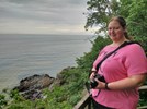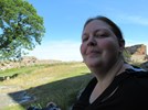 Efter vores bison-eventyr kørte vi mod Paradisbakkerne nær Nexø, for at se den "rigtige" rokkesten. Der er åbenbart flere rokkesten på Bornholm - men nu vil vi se Rokkestenén! Det var vi ikke de eneste der ville... Vi har generelt bemærket, at der i løbet af de sidste par dage er kommet RIGTIGT MANGE turister til øen. Så vi er begge glade for, at vores Bornholms-tur er ved at være slut. Men parkeringspladsen ved Rokkestenen var i hvert fald fuld. Så vi måtte parkere langs vejen i stedet. På vej ind til Rokkestenen havde vi læst, at man kunne skyde genvej ved at gå til venstre, på et eller andet tidspunkt... Men det var TYDELIGVIST ikke der hvor vi valgte at gå til venstre. Vi kom ud på en sti (hvis man kan kalde den det), som gik i svært fremkommeligt terræn, op og ned, ad klipper og bakker i skoven, med trærødder som hele tiden prøvede at spænde ben for os. Vi var lige ved at give op, men fortsatte alligevel frem, indtil vi - omsider og heldigvis - nåede Rokkestenen. Vi fik taget de obligatoriske billeder, og Thomas var lige ved at vælte Rokkestenen omkuld i sit forsøg på at rokke den. På tilbagevejen fulgte vi den afmærkede rute, som gik ad en næsten plan grussti, hele vejen tilbage til parkeringspladsen...!!!