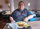 Vi var stadig lidt sultne, så vi kørte fra Bisonskoven imod Nexø, hvor vi havde hørt om et røgeri, som serverer andet end sild. De havde heldigvis både plads og tid til at fodre os! Mens vi spiste rullede et stort regn- og tordenvejr forbi os, så vi blev siddende og ventede på at det drev over. Vi købte nogle fiskefrikadeller som vi tog med hjem, til den sene aftensmad.
