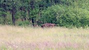 Halvvejs igennem Bisonskoven blev vi stoppet af en lokal Bornholmer på cykel, som sagde at han havde set dem en kilometer nede af en skovvej, ved en lysning. Så vi smed bilen på en parkeringsplads, og vandrede ned til lysningen. Foran os gik der fire tyskere, som åbenbart ikke vidste at bison'erne er sky, og derfor talte de meget højt sammen. Da vi nåede til lysningen så både vi og tyskerne en flok på 4-5 bisonokser, men de både så og hørte også os (eller i hvert fald tyskerne), og derfor fortrak de ind i skoven igen. Ærgerligt, men vi fik da lige set dem, og fik skudt et par billeder af dem.