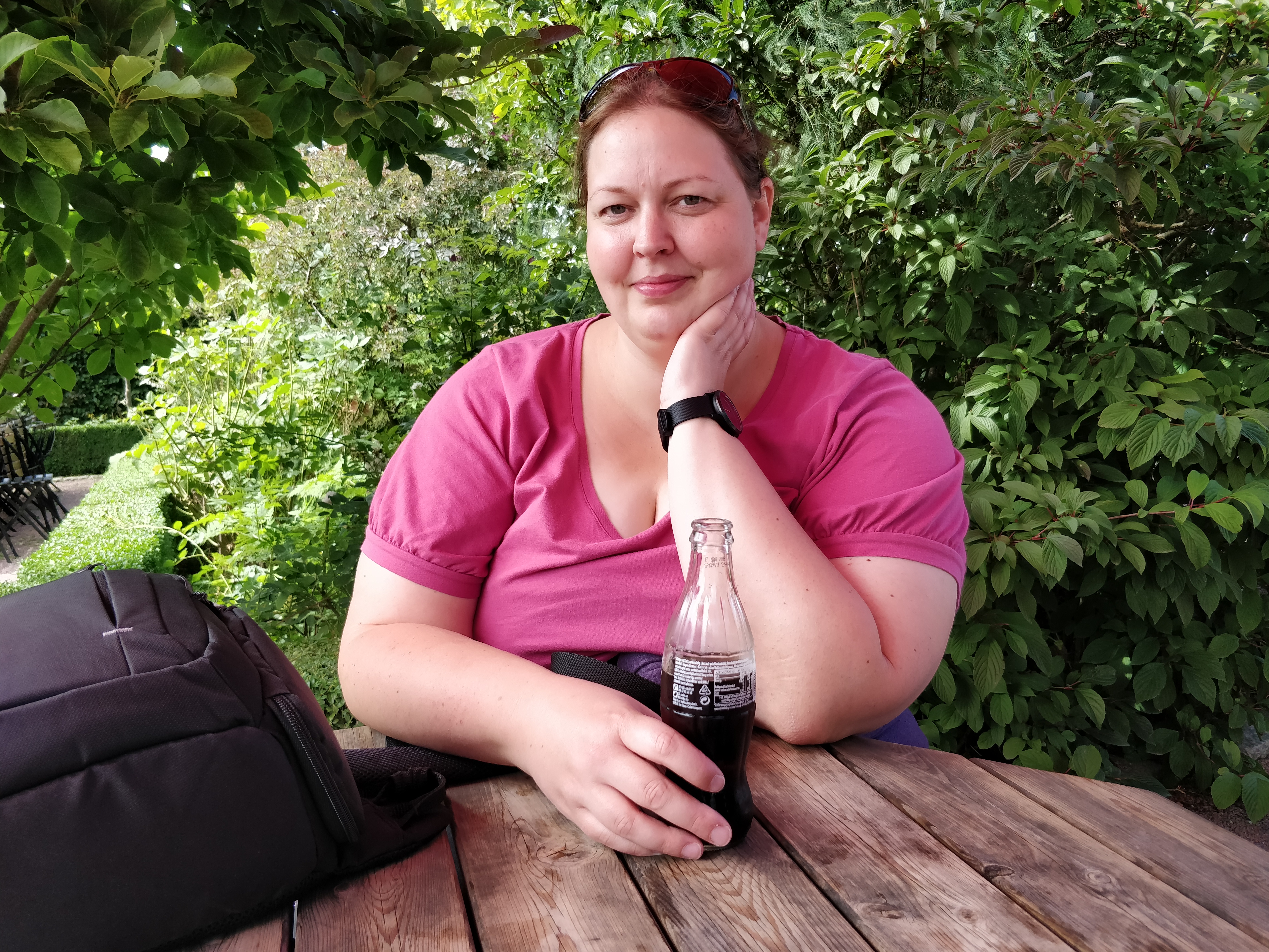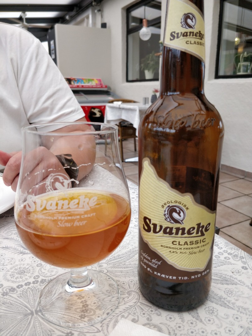 Vi havde begge fået rigeligt med sol og varme, og vi trængte begge til en timeout. Så vi kørte hjem til Boderne og tog en pause inden aftensmaden. Vi havde bestemt at vi ville spise på Pakhuset i Svaneke, så der kørte vi ind til aften. Maden var OK, men drikkevarerne var smagsløse. Men det oplever vi tit.