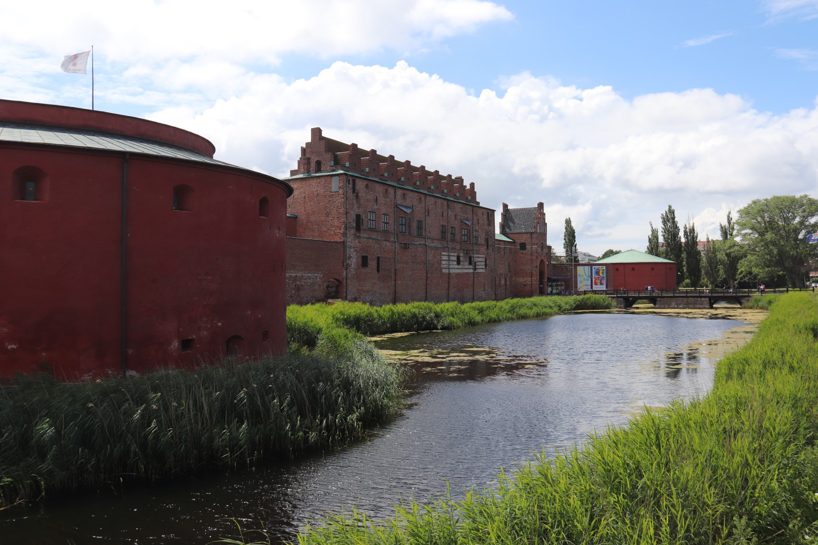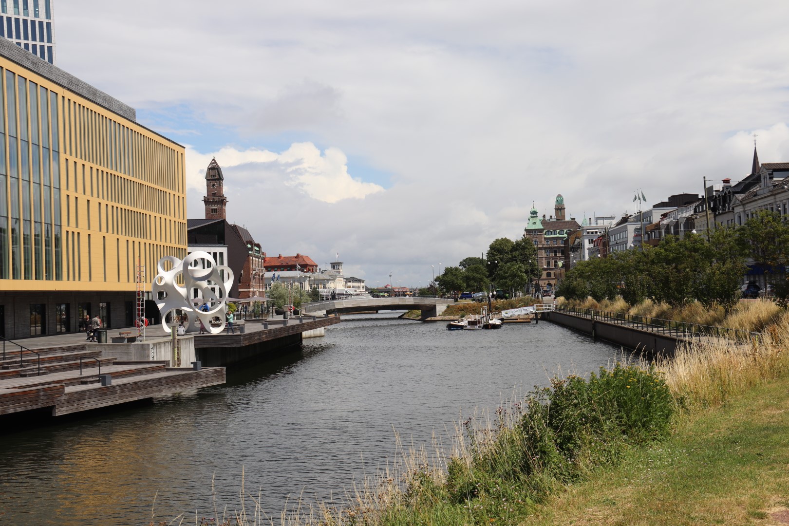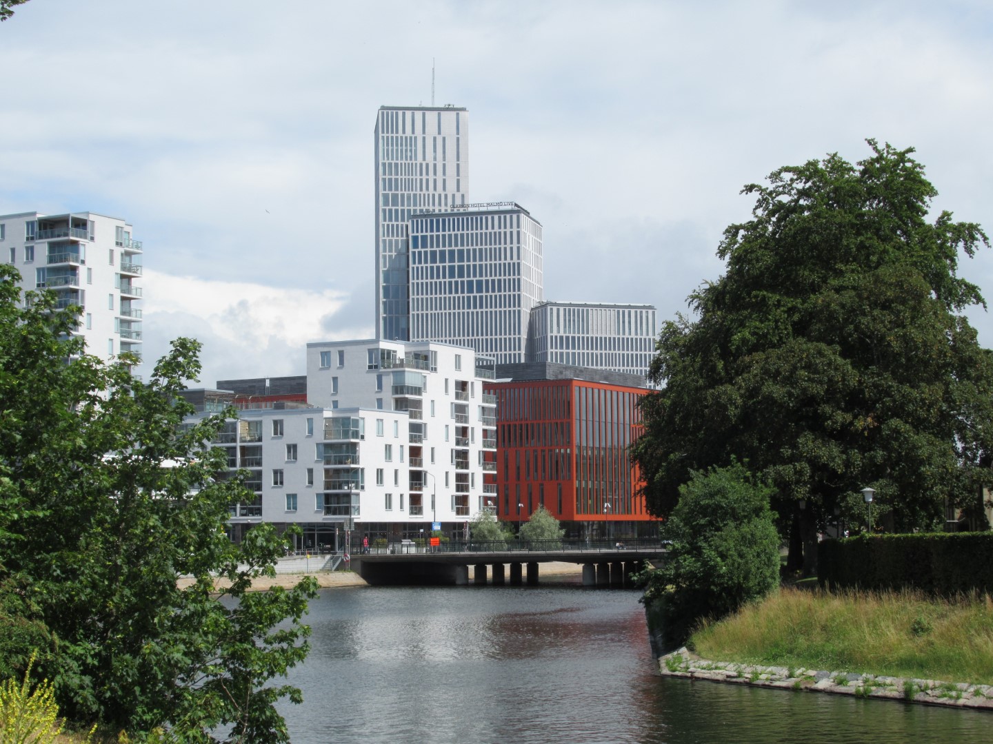 Så gik vi om til Malmöhus Slot og tog nogle billeder. Vi ville dog ikke betale for at komme ind - det er jo kun det ældste renæssance-slot i Nordeuropa. Desuden gad vi ikke se på gamle bygningsværker i dag. I stedet gik vi ind imod byen langs kanalen, og fandt et sted hvor vi kunne få en kanal- og havnerundfart. Så vi er kommet igennem alle Malmös kanaler og set en hel masse meget lave broer og nogle af de mange parker i byen. Malmö er nu en pæn by, med alle de parker og kanaler. Det kunne Skive Kommune lære noget af!