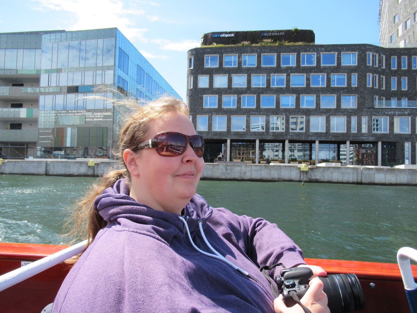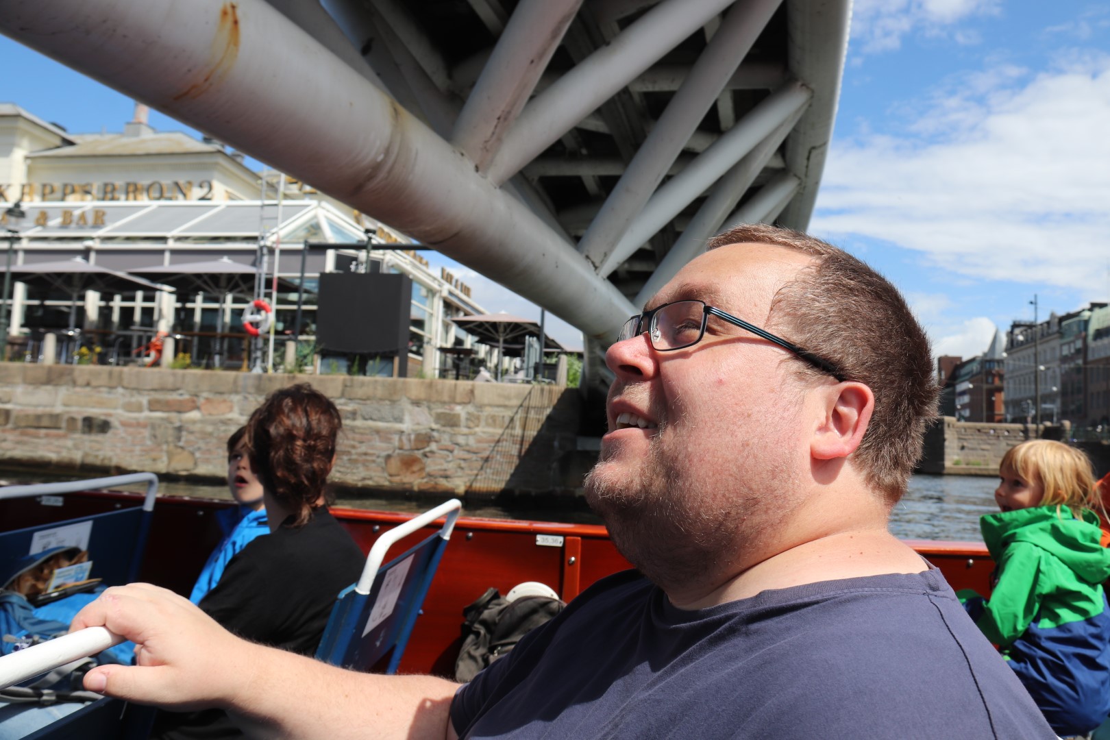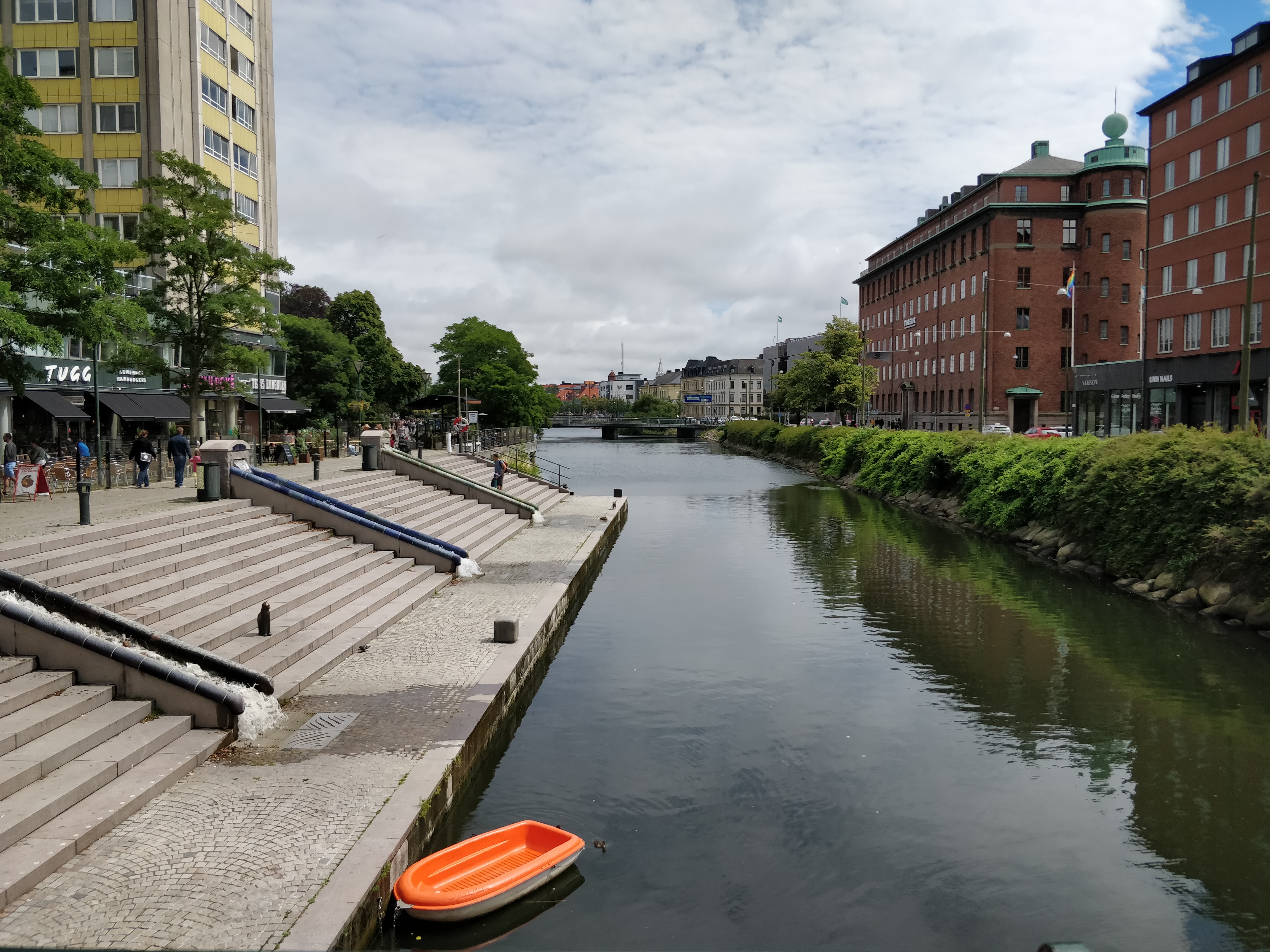 Så gik vi om til Malmöhus Slot og tog nogle billeder. Vi ville dog ikke betale for at komme ind - det er jo kun det ældste renæssance-slot i Nordeuropa. Desuden gad vi ikke se på gamle bygningsværker i dag. I stedet gik vi ind imod byen langs kanalen, og fandt et sted hvor vi kunne få en kanal- og havnerundfart. Så vi er kommet igennem alle Malmös kanaler og set en hel masse meget lave broer og nogle af de mange parker i byen. Malmö er nu en pæn by, med alle de parker og kanaler. Det kunne Skive Kommune lære noget af!