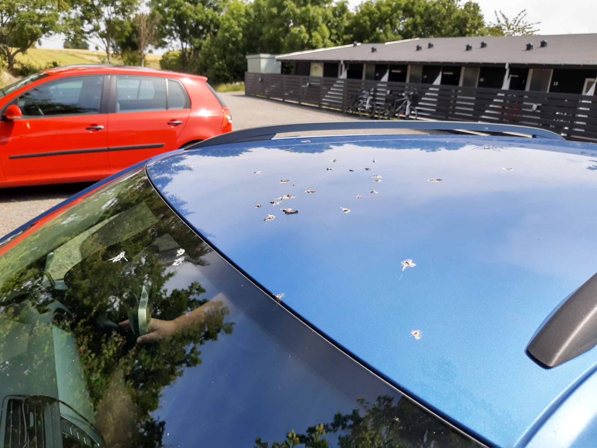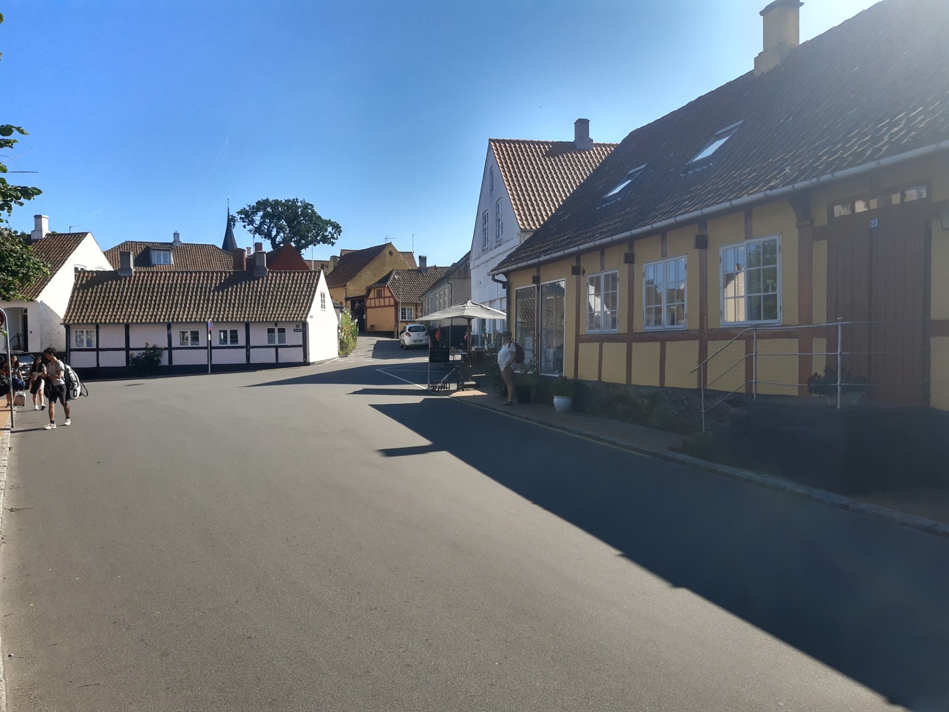 Vel ankommet til Boderne og ferielejligheden fik vi os indlogeret. Det er småt, men udmærket til to personer. Men vi savner godt nok vores tryk-aflastende topmadras der hjemme. Vi har ikke haft mad med i bilen, da der har været omkring 1000 grader varmt, så vi må afsted til den nærliggende by, Aakirkeby, for at handle ind.