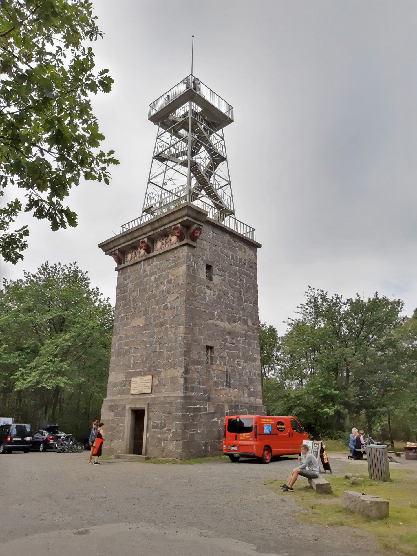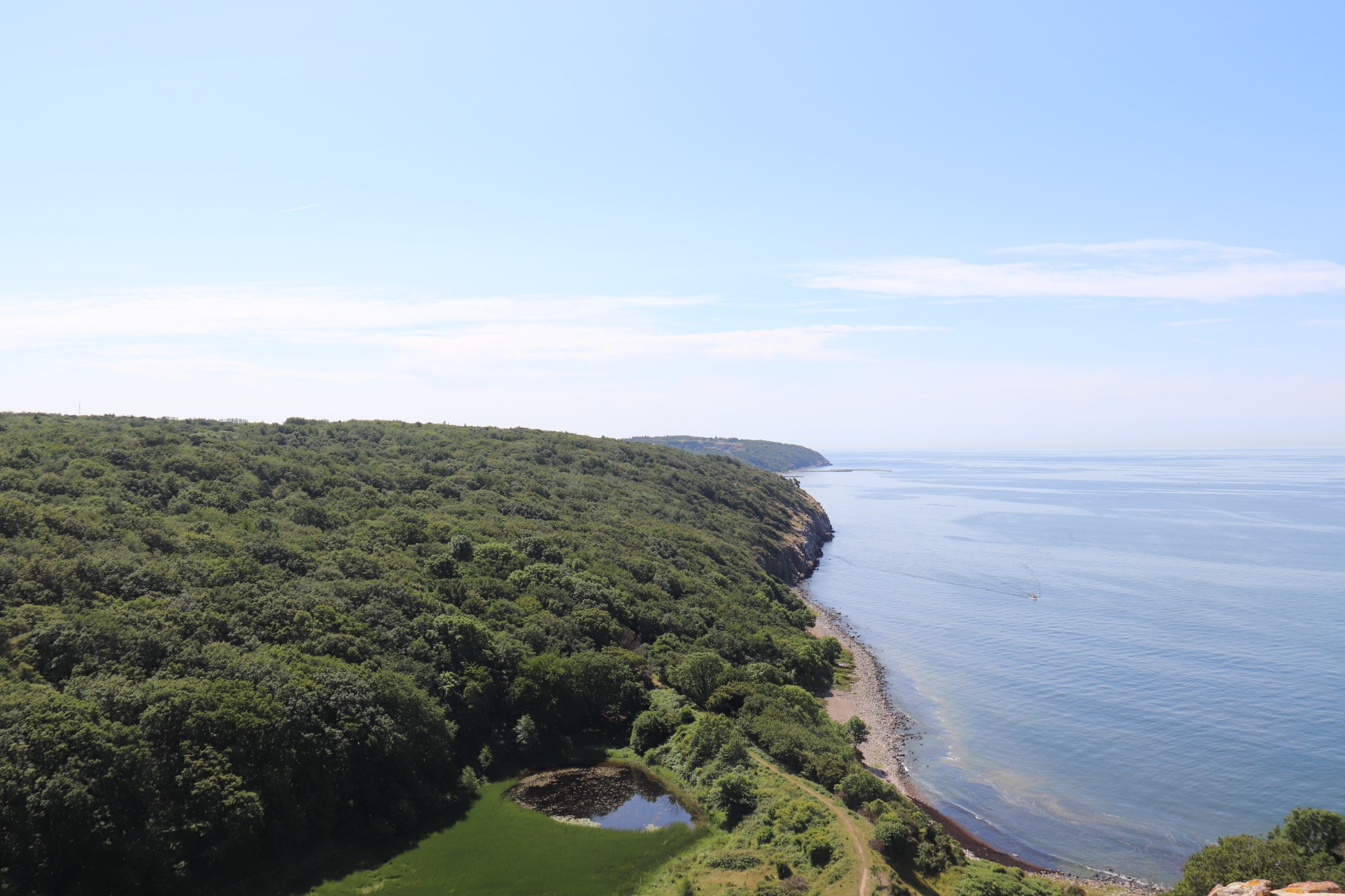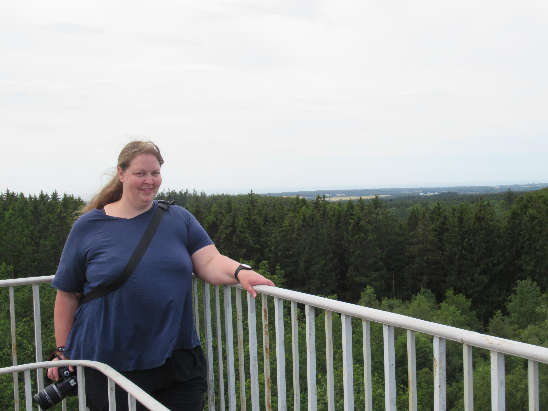 Videre op langs kysten til Hasle, hvor vi så et røgeri. Men vi var ikke sultne, så vi kørte videre og ind mod midten af øen til Rytterknægten, som er det højeste punkt på Bornholm. Vi var en tur oppe i tårnet, så vi kunne se ud over trætoppene. Det var et flot syn, selvom der var lidt overskyet.