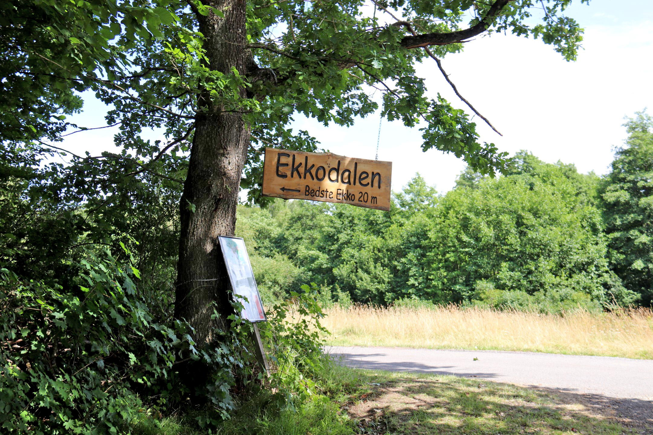 Fra Rytterknægten kørte vi til Ekkodalen, hvor vi fik svar på en masse spørgsmål. Bl.a. "Hvad drikker møller?" og "Hvad giver rigtige prinsesser smerter?". Svarene vil vi dog ikke give videre her... Vi ville have spist, hvad der i Jylland betegnes som, en mellemstor tartelet til frokost, men Ekkodalshuset var fuldt booket hele dagen. Så nu har vi bestilt bord på søndag til middag i stedet.