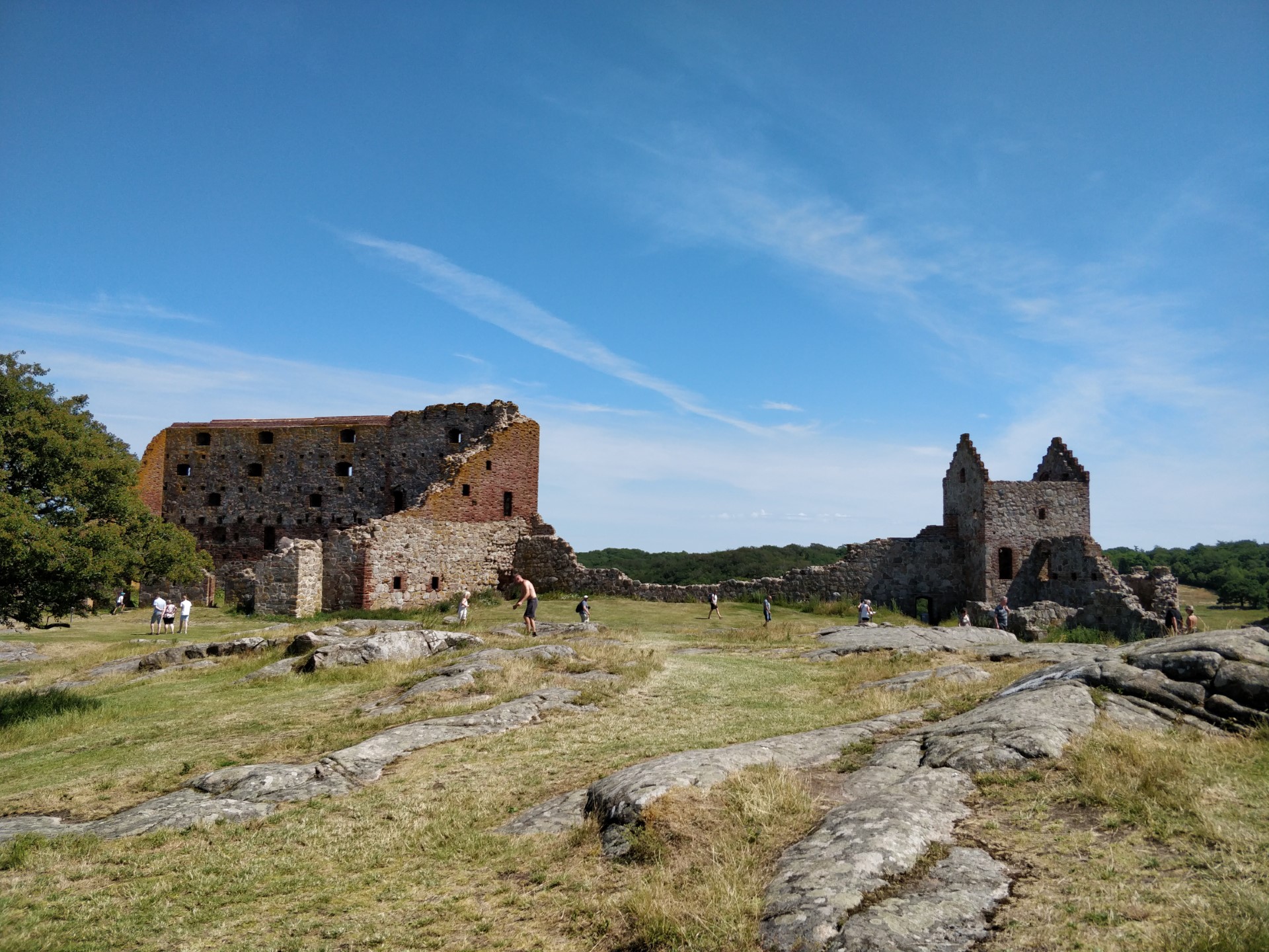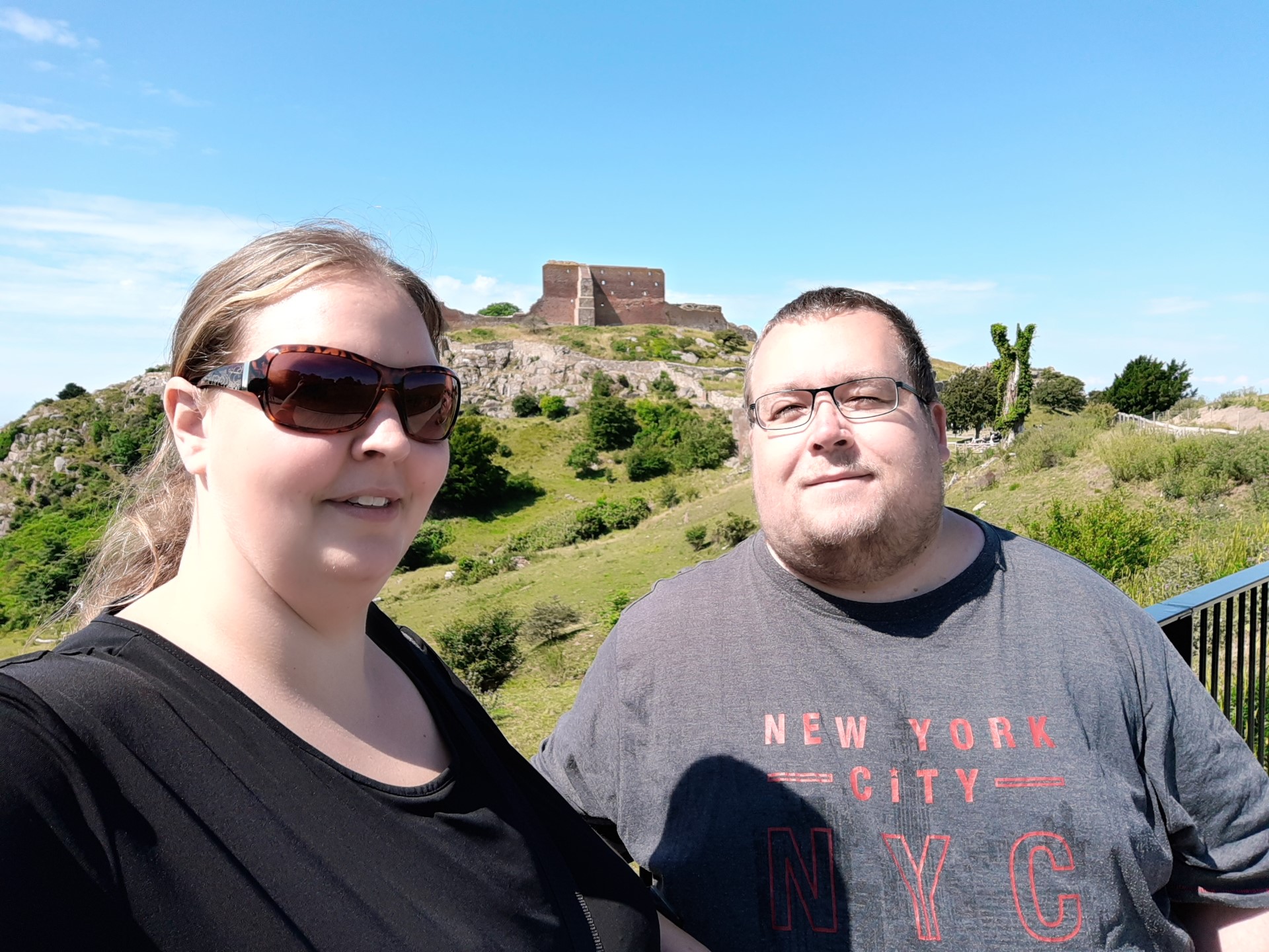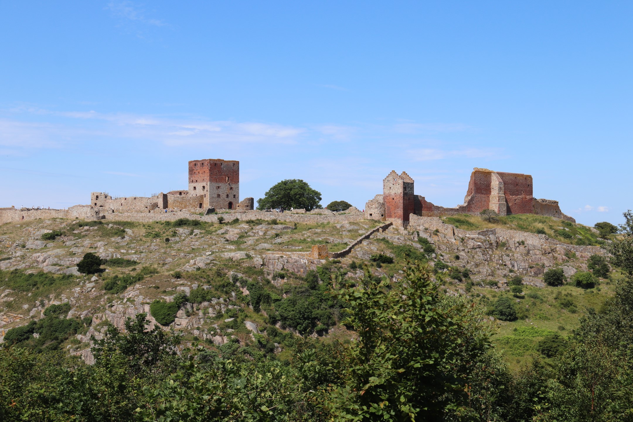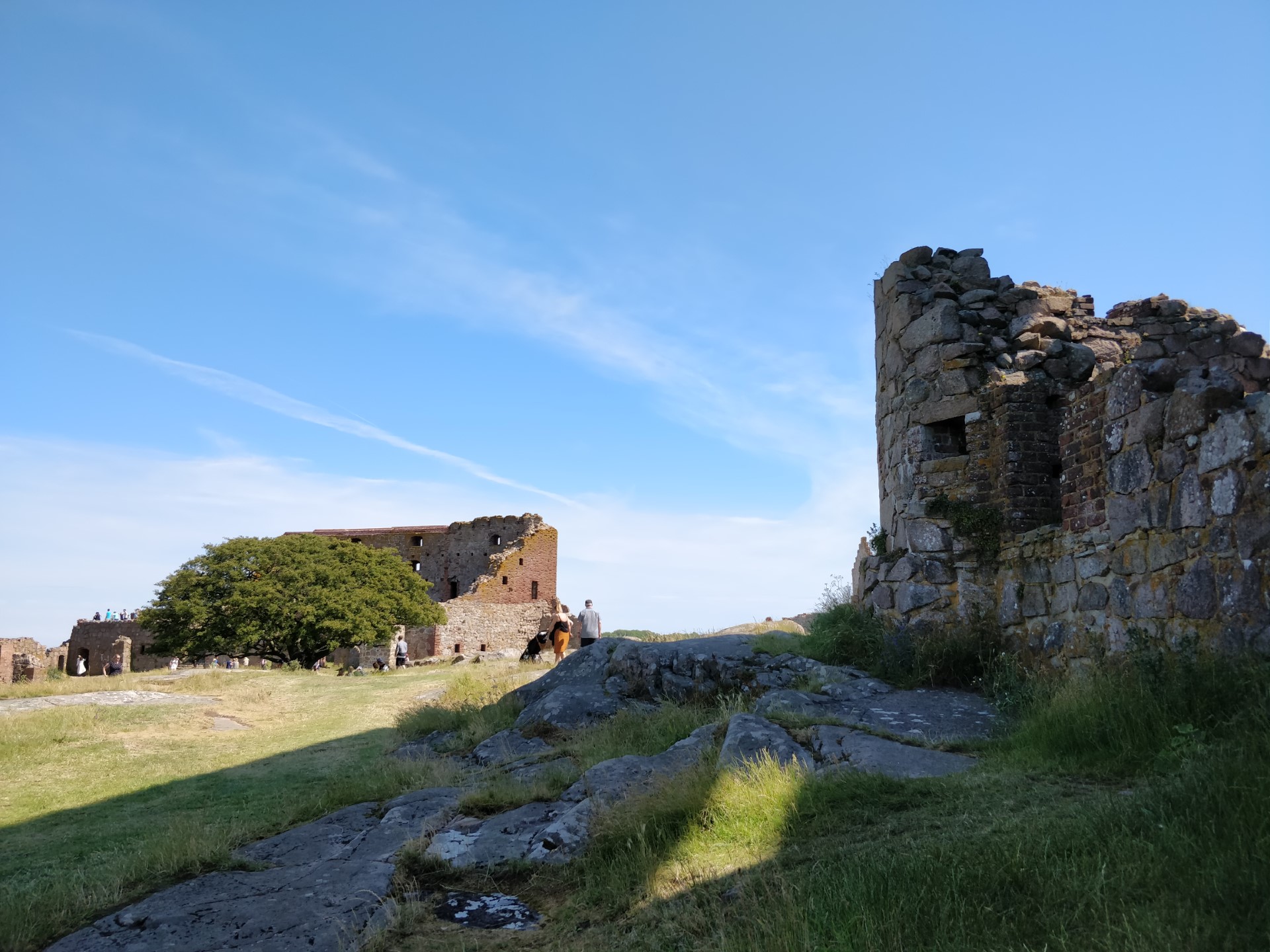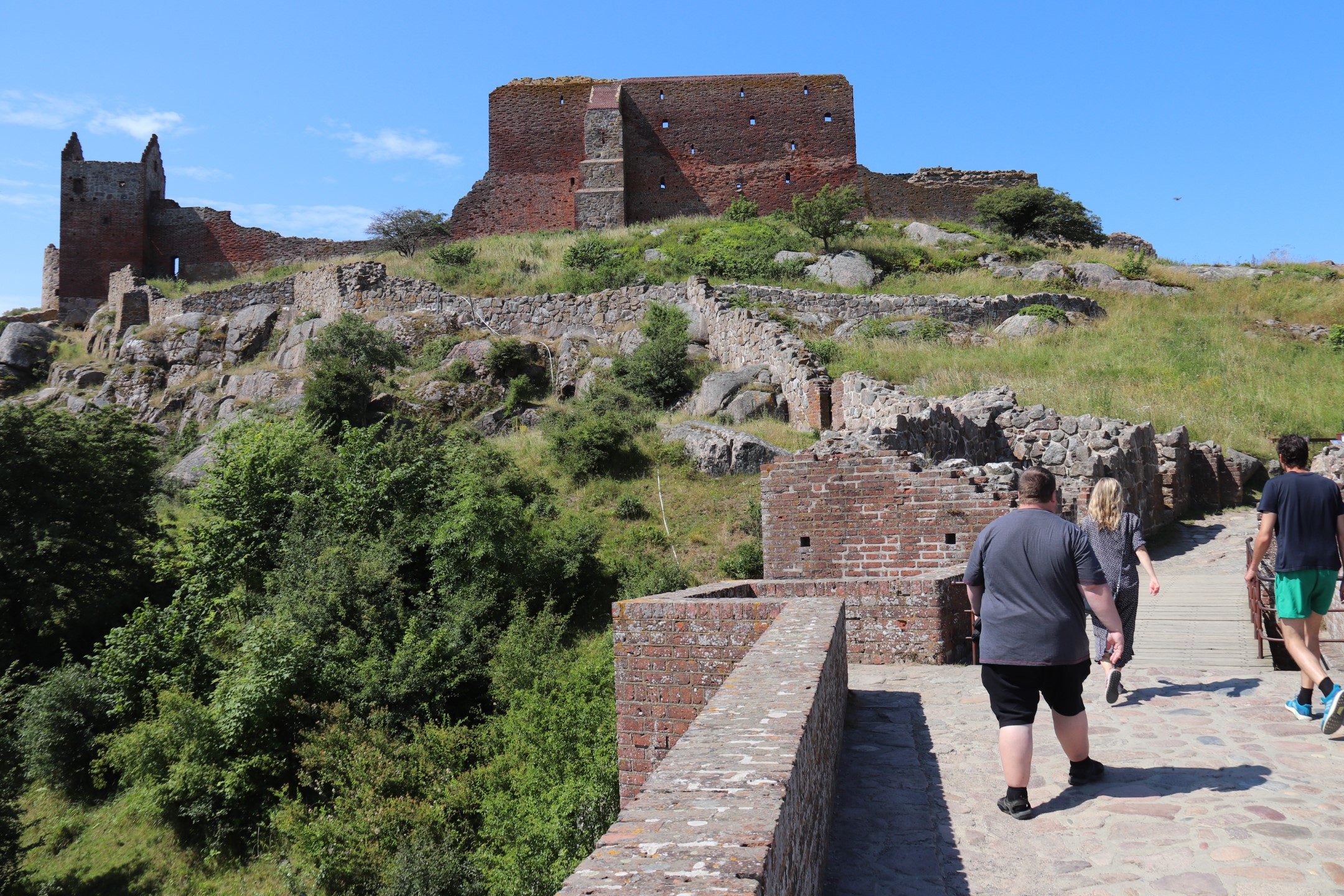 Billeder:I dag har vi besøgt Hammershus Slotsruin på det nordlige Bornholm. Det er imponerende hvad de har formået at bygge dengang, taget i betragtning, at alle byggematerialerne skulle slæbes hele vejen der op... Men dengang tvang man selvfølgelig bare Bornholmerne til at arbejde. Vi var så skide smarte at besøge Hammershus i den værste middags-sol, så det var VARMT! Men heldigvis kan man jo købe en is der oppe 🍧... Nå nej... Det kan man heller ikke... Men det var da en forretningsidé som de må få helt gratis!