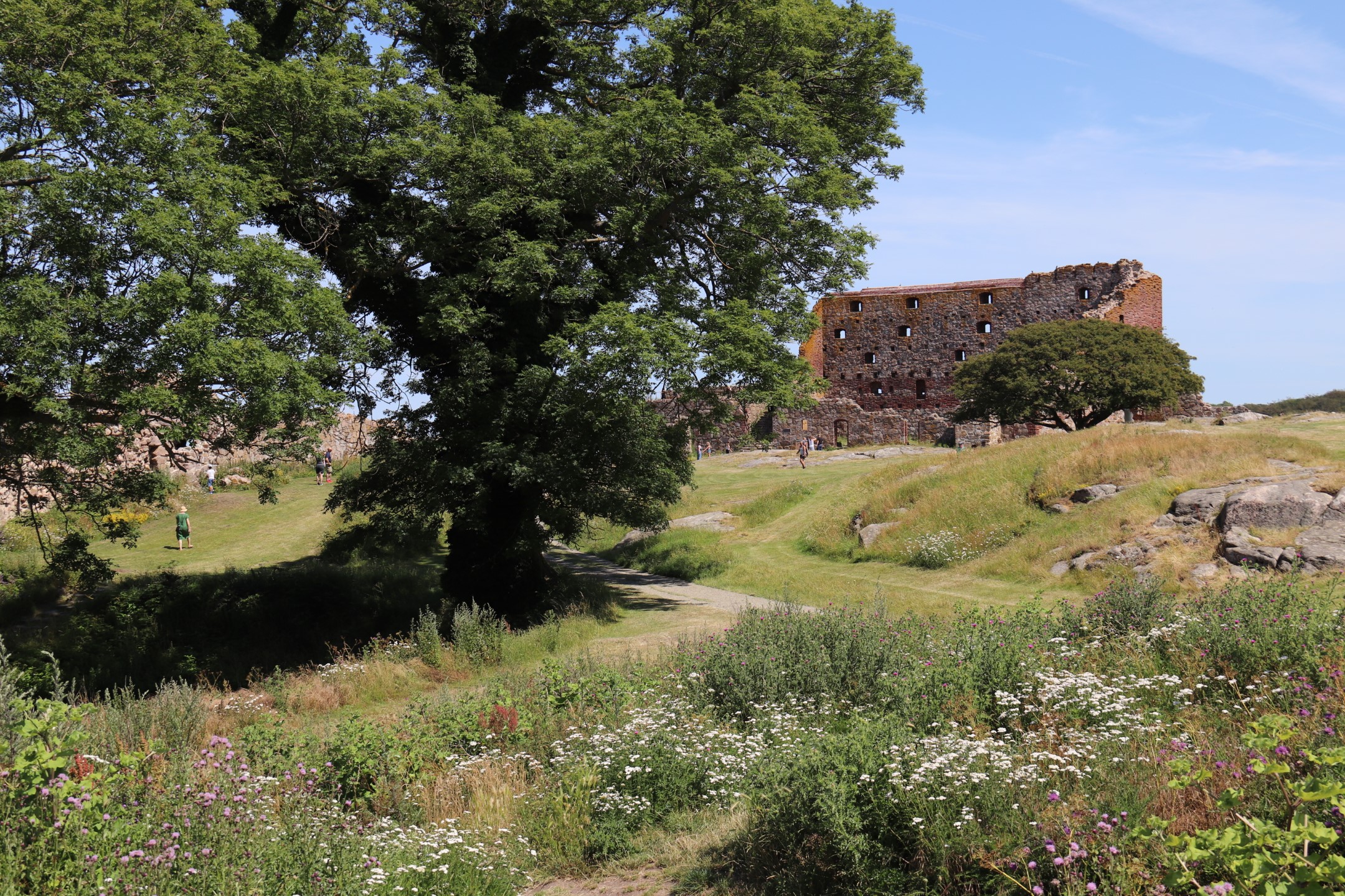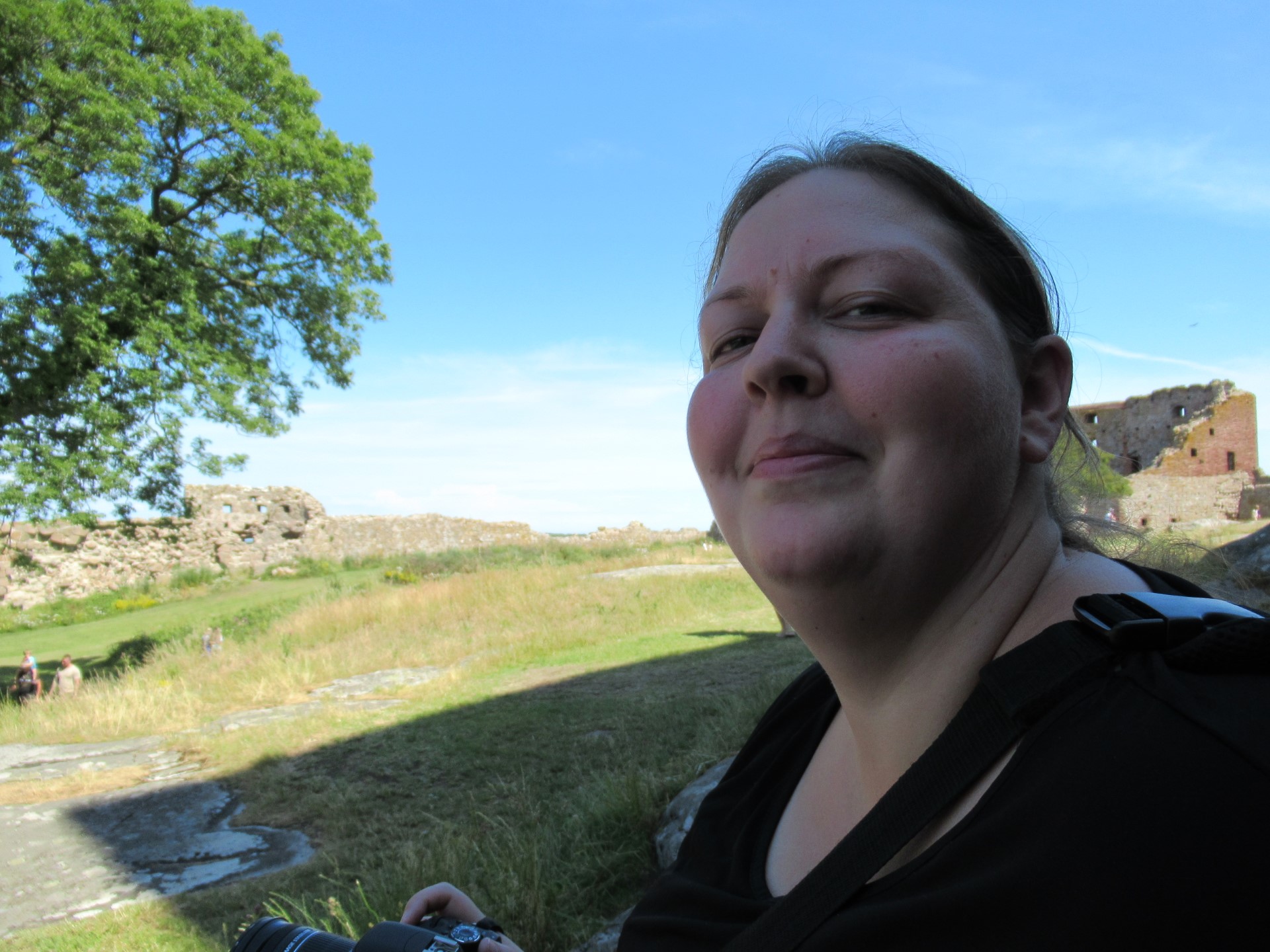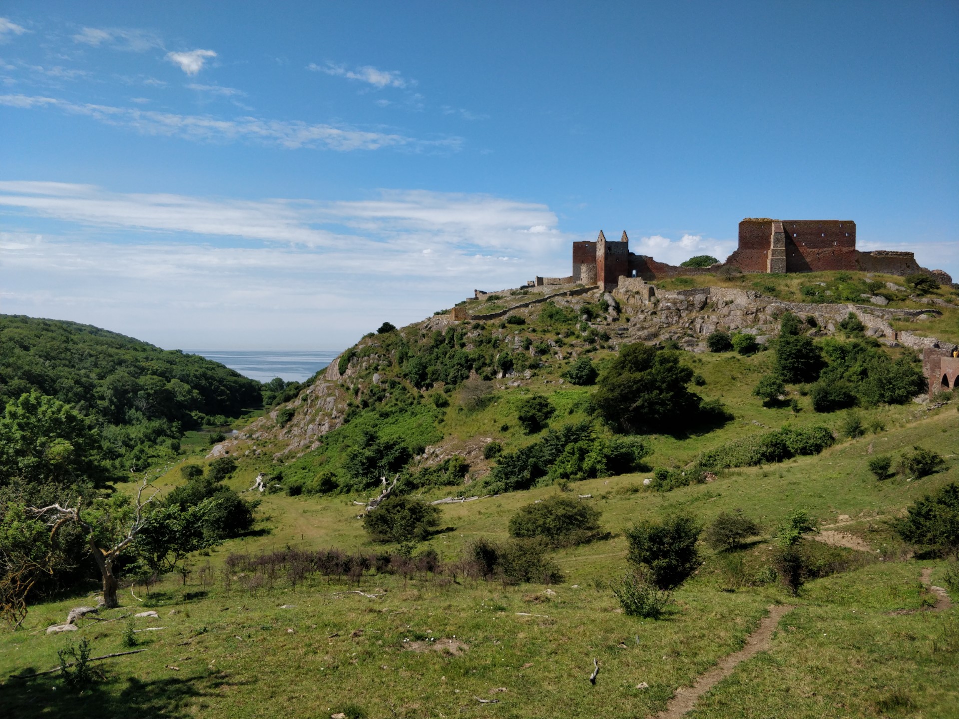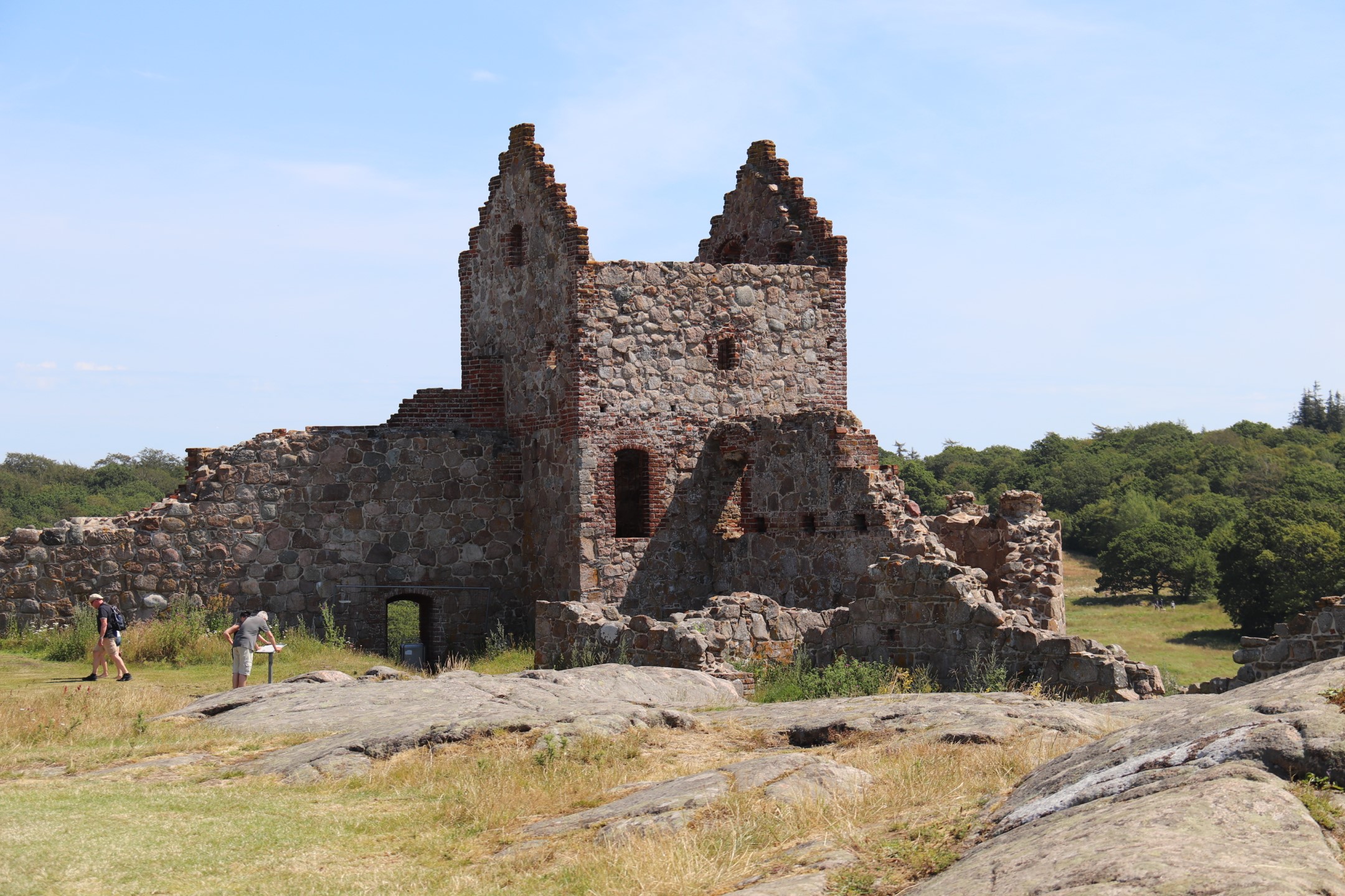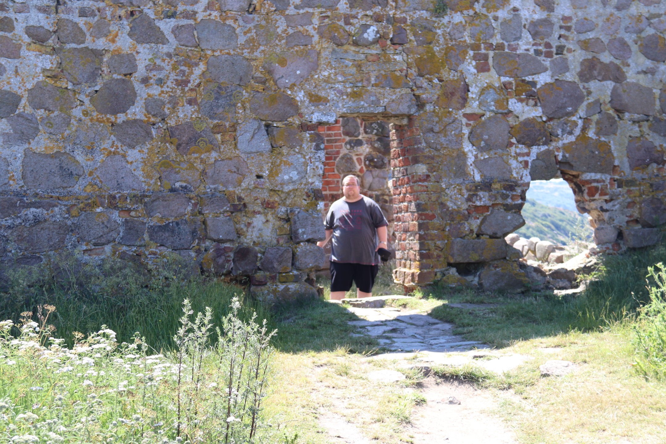 Billeder:I dag har vi besøgt Hammershus Slotsruin på det nordlige Bornholm. Det er imponerende hvad de har formået at bygge dengang, taget i betragtning, at alle byggematerialerne skulle slæbes hele vejen der op... Men dengang tvang man selvfølgelig bare Bornholmerne til at arbejde. Vi var så skide smarte at besøge Hammershus i den værste middags-sol, så det var VARMT! Men heldigvis kan man jo købe en is der oppe 🍧... Nå nej... Det kan man heller ikke... Men det var da en forretningsidé som de må få helt gratis!