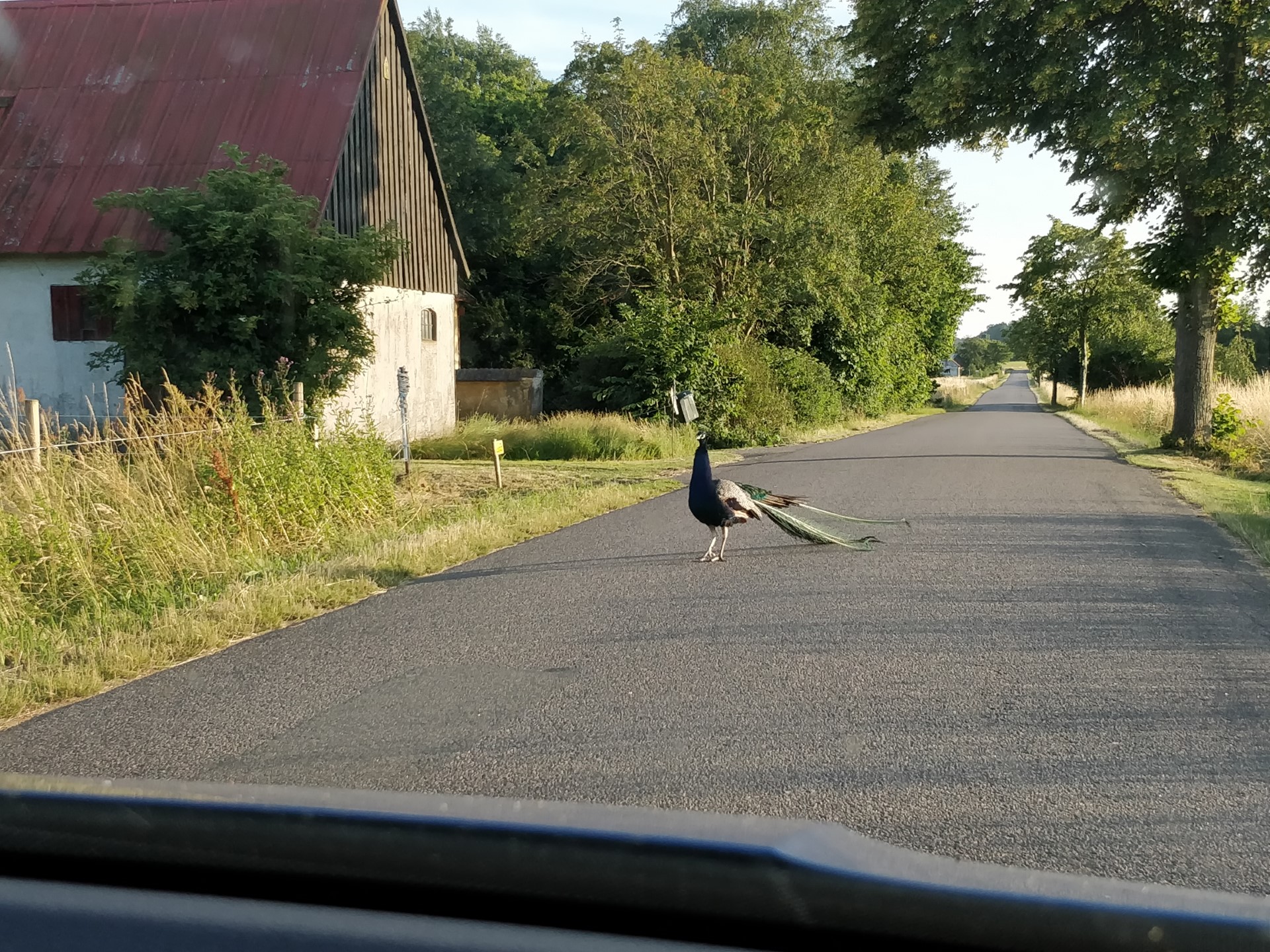 På vejen hjem mødte vi en påfugl, som ikke havde tænkt sig at flytte sig fra vejen. Den var tydeligvis meget territorial omkring dens vej, og mente ikke at vi havde fået tilladelse til at passere.