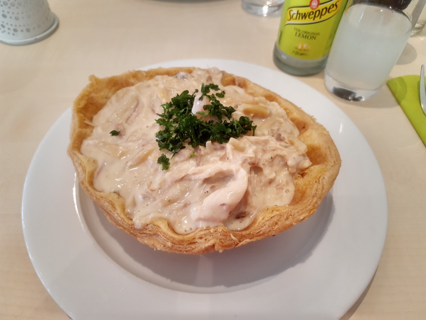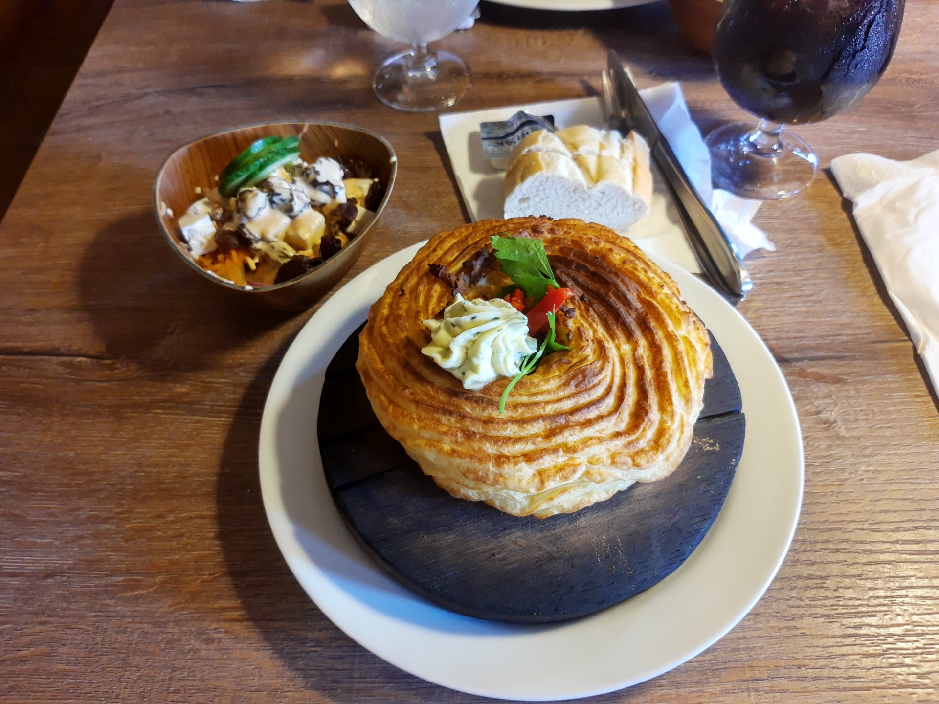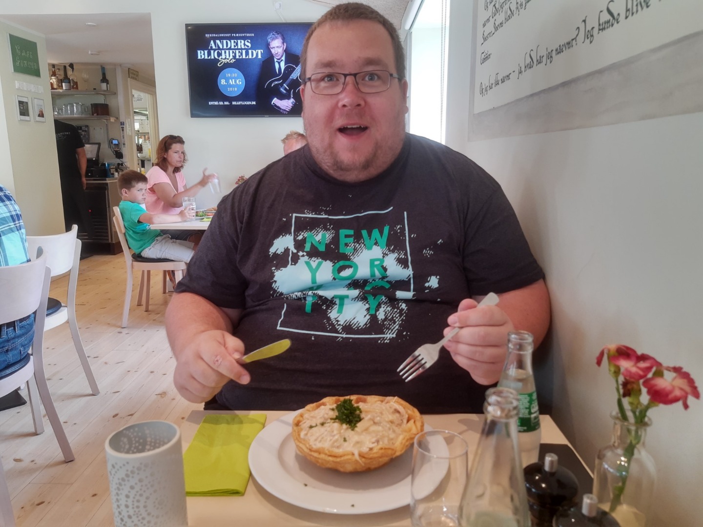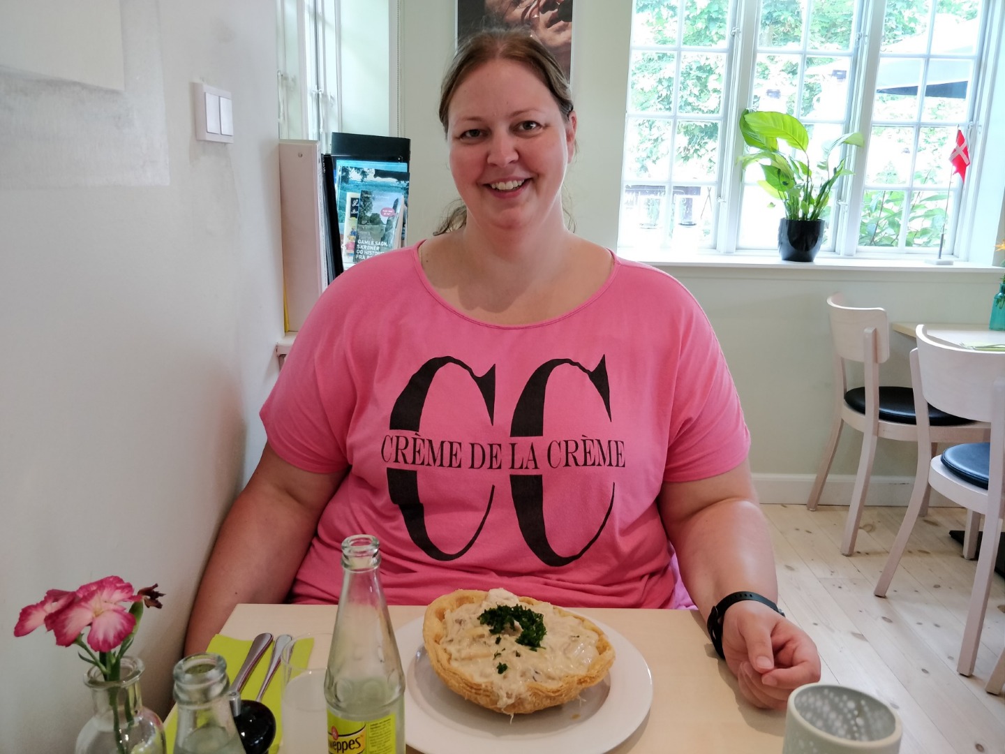 Billeder:Vi har haft en rolig formiddag i lejligheden, hvor vi har sat ude på terrassen og nydt det gode vejr. Ved middagstid var det tid til at køre tilbage til Ekkodalen for at indtage middagsmaden, nemlig jyde-cupcakes 🧁, også kendt som tarteletter. Det var nogle velvoksne tarteletter der blev serveret for os, så vi kunne begge nøjes med en enkelt.