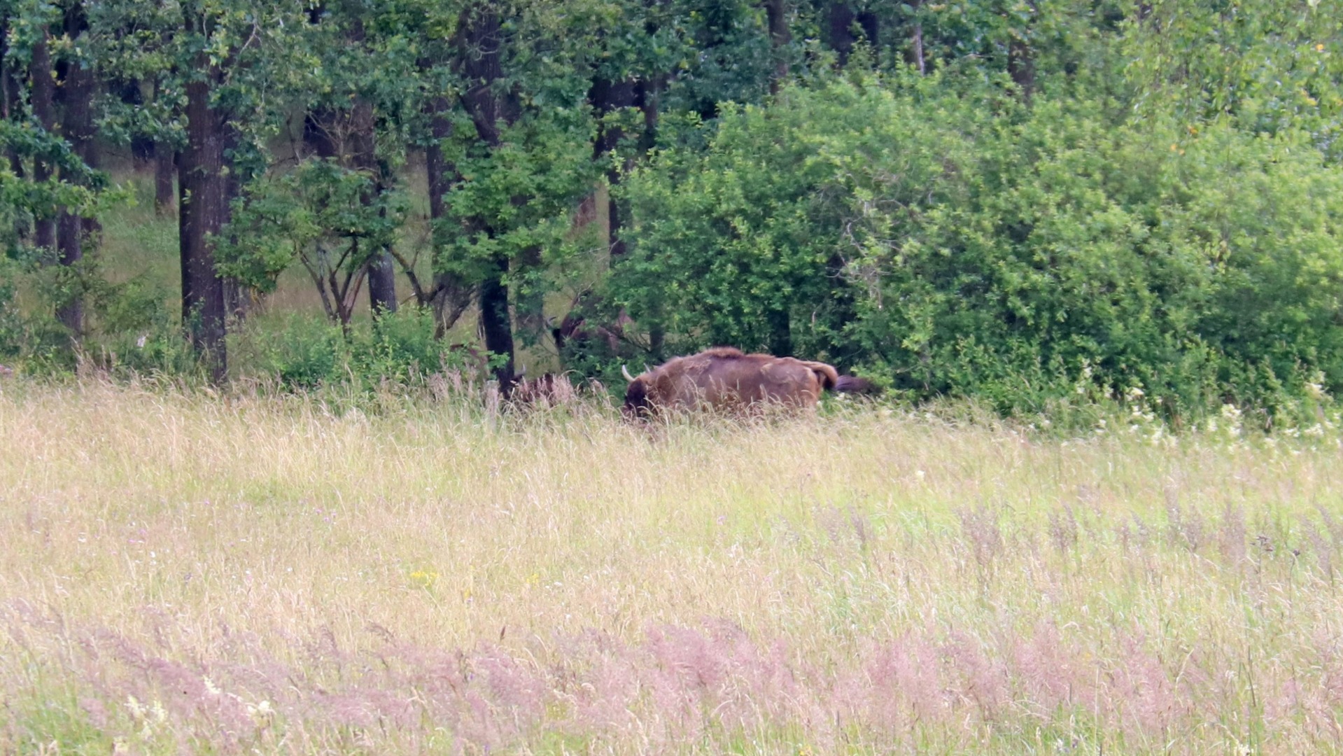 Svært skuffede og lidt sultne kørte vi videre til Bisonskoven for at lede efter de næsten usynlige bisonokser. De er så sky og svære at finde, at selv Bornholmerne ikke har set dem endnu. Vi så dem desværre heller ikke. Så nu vil Lone ind og lede efter dem hver dag - indtil vi skal hjem.